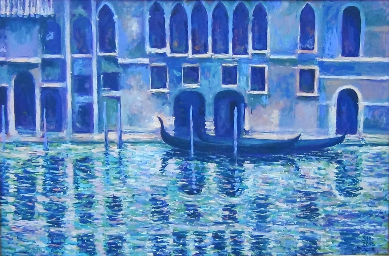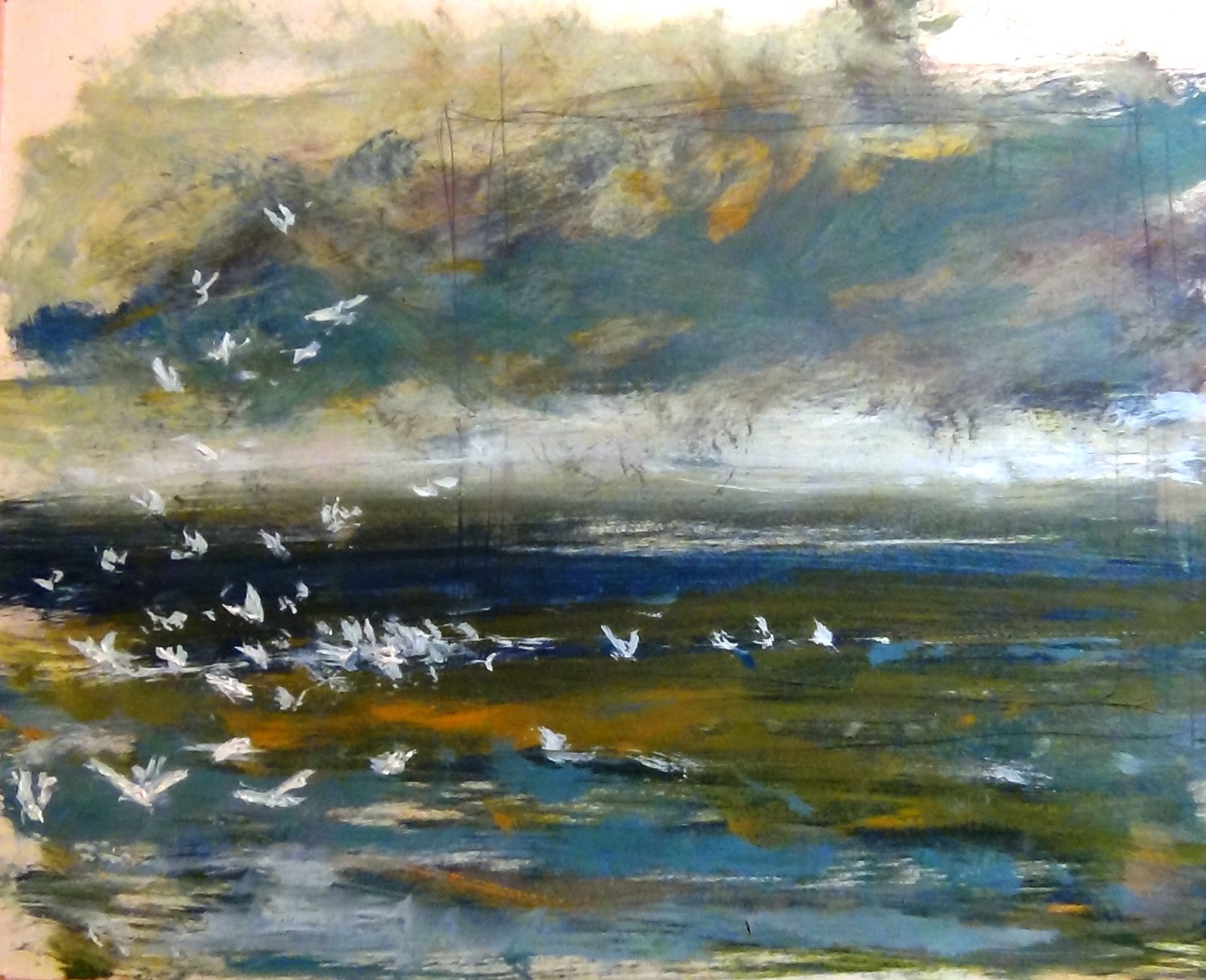 The need to create has always been with me, and usually springs from seeing an image I want to possess - in a gallery, in a book, in nature. I have never lost interest in representation, and have returned to re-workings of Impressionists and other Masters, learning techniques and colour-mixing from those whose work I admire. Inspirations for this show came from Ramsay, Turner, Whistler, Monet, Van Gogh, Fred Cuming, Ken Howard, and many others. Photographs are mostly of the South-West coast. The paintings are primarily done for my own enjoyment, in response to earlier study and research, to gallery visits and to my travels. The images in this exhibition reflect my passions: water, reflections, colour, and most of all, the sea...