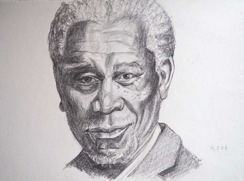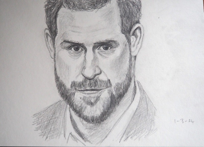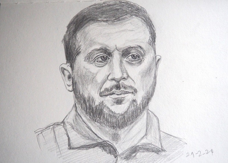 The sketches below include: Morgan Freeman, Prince Harry, Volodymyr Zelensky, Sir David Jason, Brenda Blelthyn, Jamie Dornan, Ed Miliband, and an un-named model.
